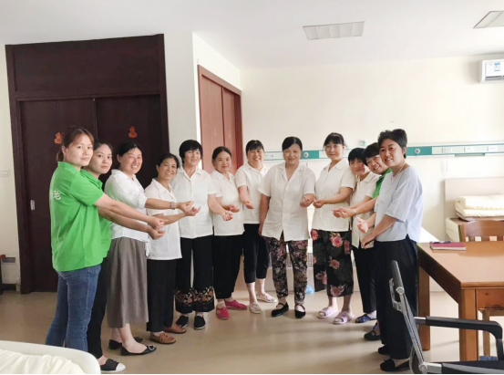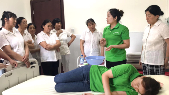 社會福利中心的護(hù)理人員們圍坐一堂,認(rèn)真聽取并一一記錄,對這次教科書式的培訓(xùn)機(jī)會格外珍惜,他們的求知欲和熱情也深深的感染者我們。